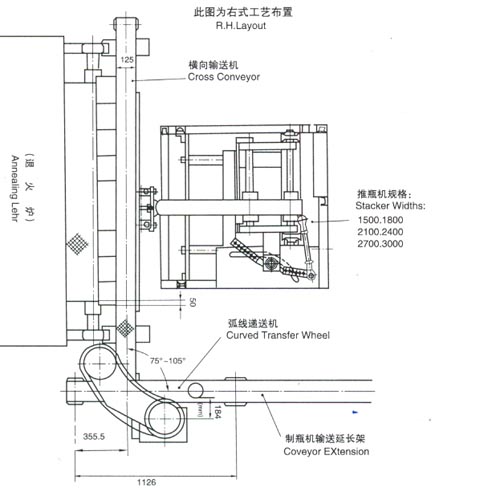 該機(jī)組是我廠(chǎng)在1988年消化吸收西德派尼康姆公司的技術(shù)制造的,具有國(guó)際九十年代先進(jìn)水平,可與QD4A、QD6A、QD6C、QD8A、QD8D等單滴料制瓶機(jī)和六組 、八組、十組、十二組、雙滴料制瓶機(jī)配套使用;與供料機(jī)、制瓶機(jī)保持嚴(yán)格的同步運(yùn)行,將玻璃制品連續(xù),等距離地自動(dòng)排列,避免碰撞,倒伏,磨擦現(xiàn)象,有效地提高玻璃制品的合格率,并保證其退火質(zhì)量,為冷端噴涂提供了良好的條件,該機(jī)組適用于任何形式任何規(guī)格的退火爐,尤其適用于電加熱的退火爐。